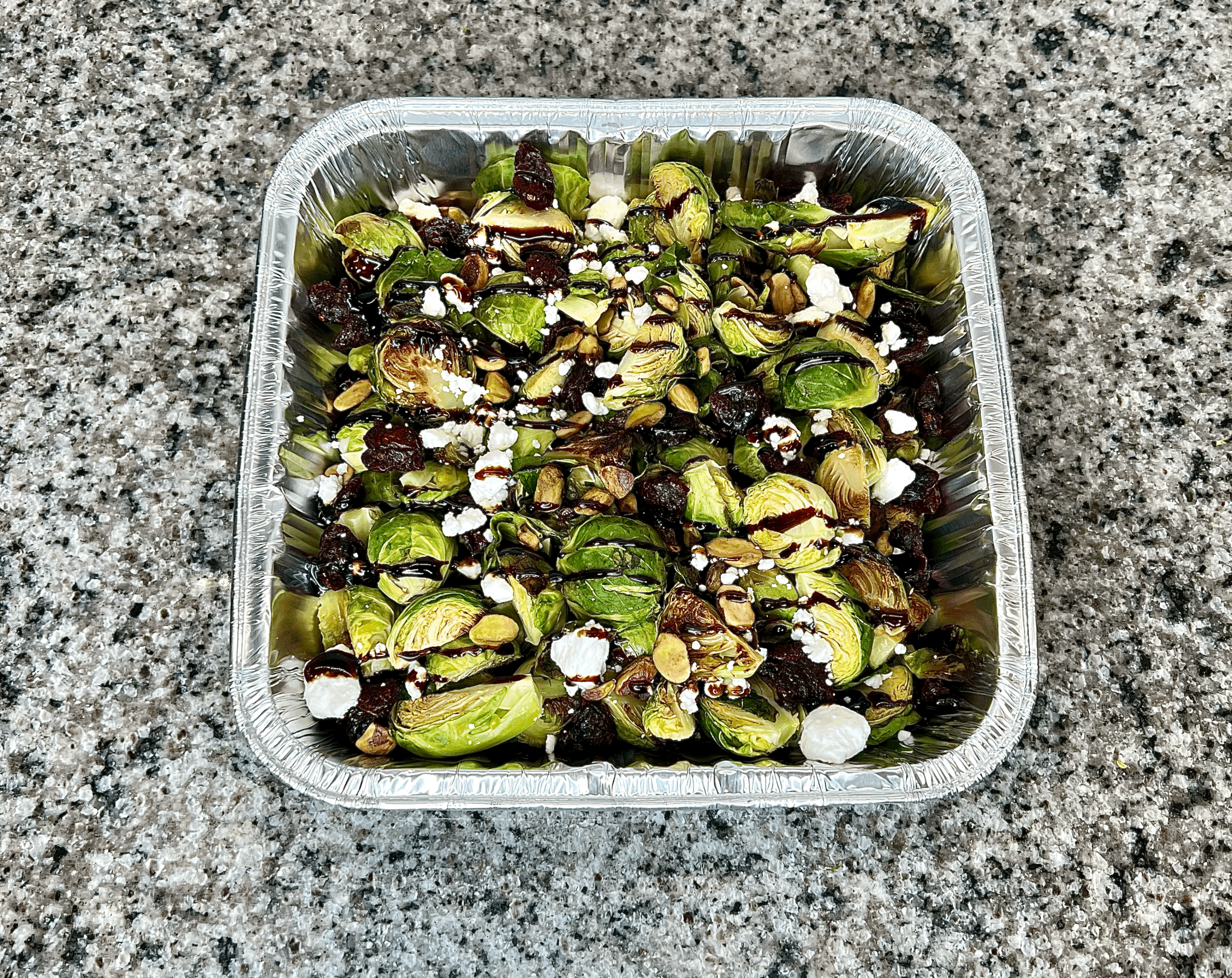 shallow fried brussels sprouts, tossed with dried cranberries, goat cheese, and pistachios, finished with a drizzle of balsamic glaze