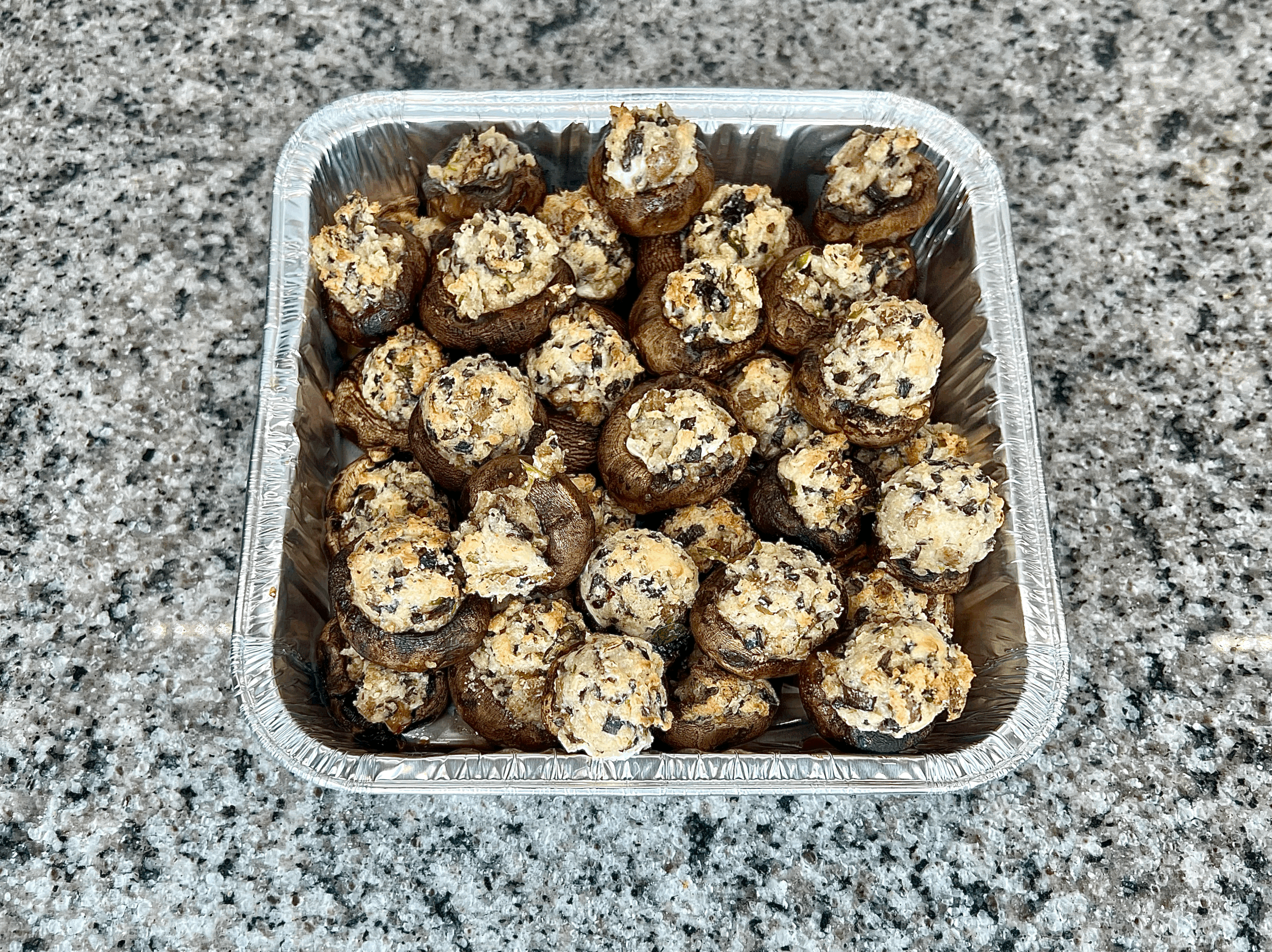 italian sausage, garlic, scallion, panko, cream cheese, parmesan, parsley, and marsala wine, stuffed in a baby bella mushroom