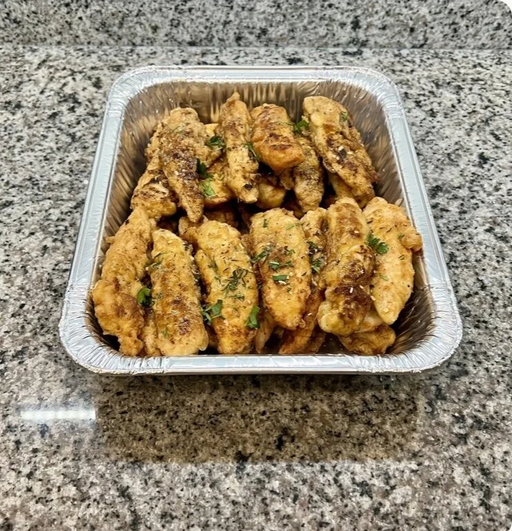 CATERING MENU › Lemon Garlic Herb Chicken Tenders - Christmas Day Menu Image 1 of 1 Lemon Garlic Herb Chicken Tenders - Christmas Day Menu from $20.00 hand-breaded chicken tenders, shallow fried, tossed in a homemade lemon garlic herb sauce Amount: Select Amount 15 tenders 30 tenders Quantity: Add To Cart Added! hand-breaded chicken tenders, shallow fried, tossed in a homemade lemon garlic herb sauce